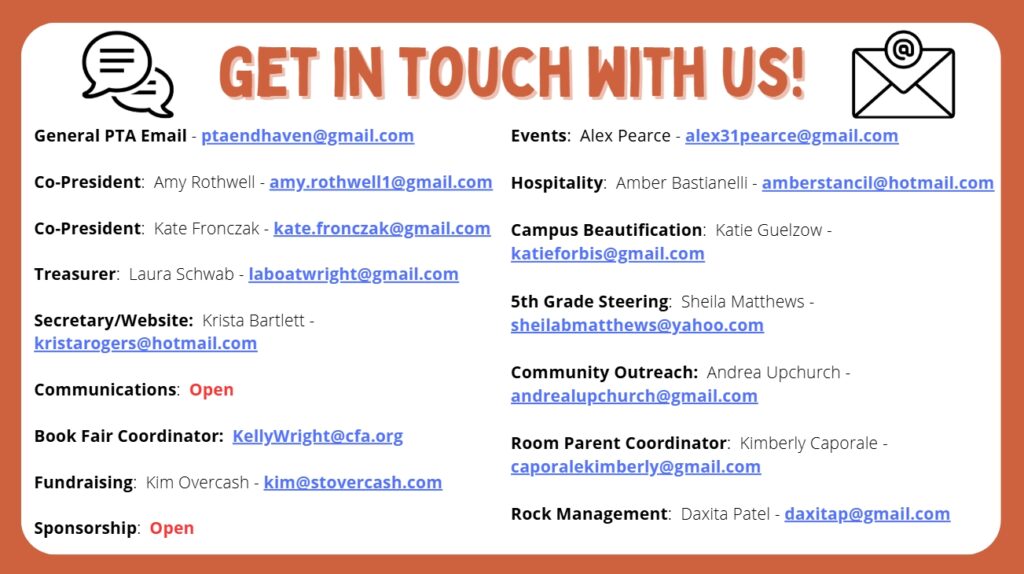 Please reach out to us at ptaendhaven@gmail.com for more information or to volunteer! We welcome your support.